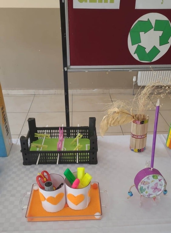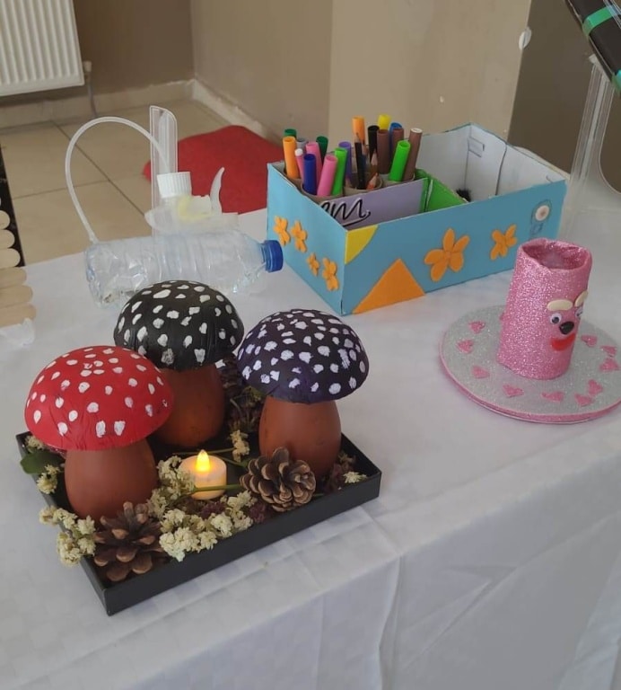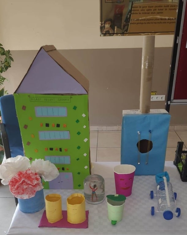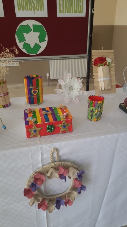 1-D Sınıfı Geri Dönüşüm malzemeleriyle Sergi düzenledi.