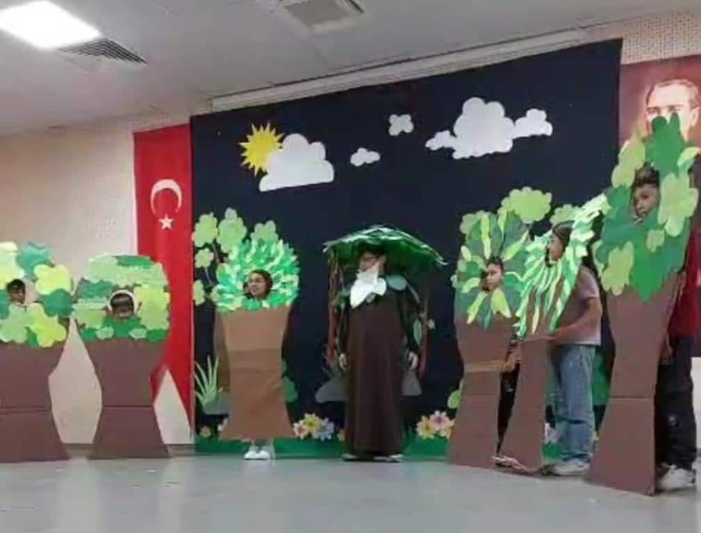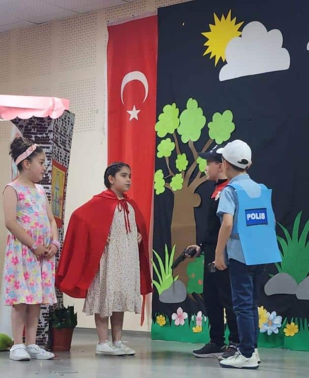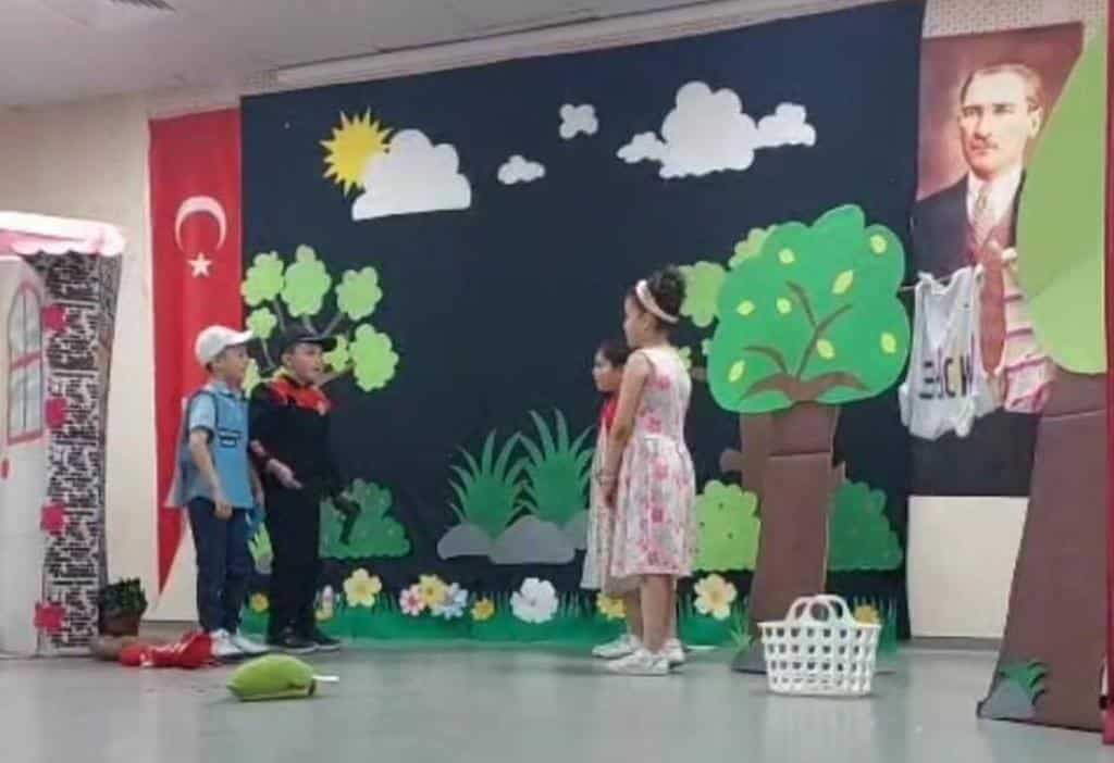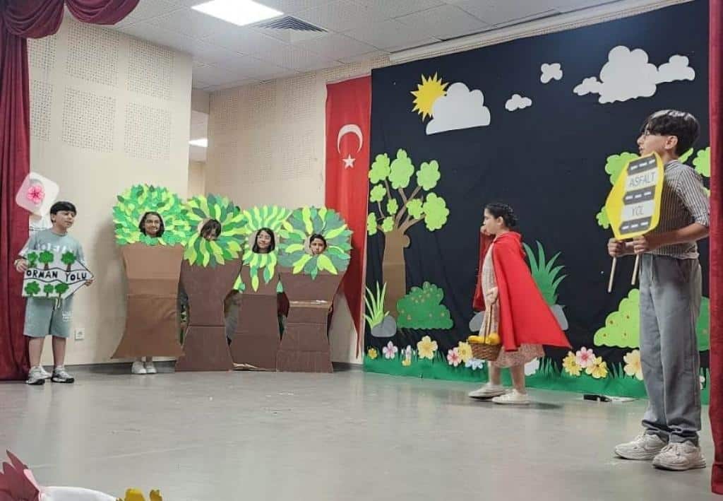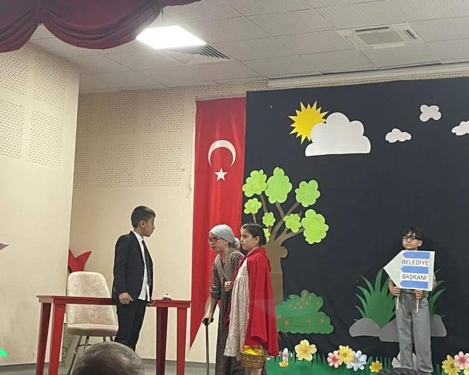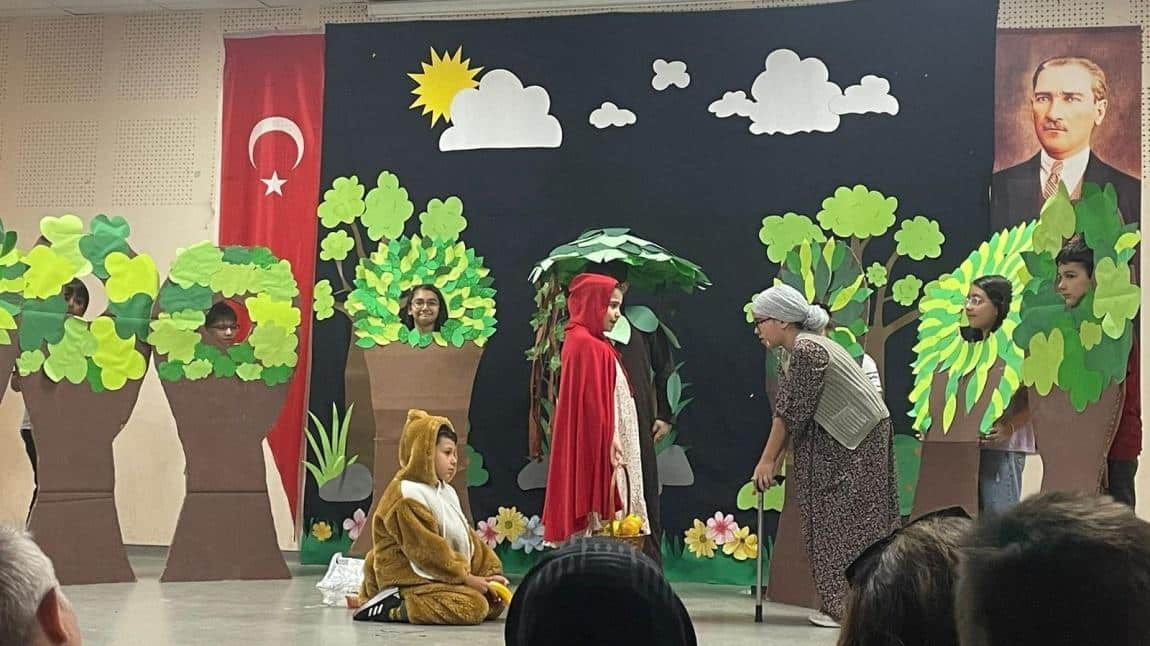3-C Sınıfı öğrencileri, sınıf öğretmenleri Ayfer AKOVA rehberliğinde '' Kırmızı Başlıklı Kız ve Orman '' Adlı Tiyatro Oyununu Sergiledi.